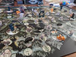 The Beast uses a deck of direction cards to move over forests, swamps and caverns, using guile and deceit to hide its track from the hunters. However, whenever a hunter moves over a location where the Beast has previously been, a trail appears. Only when a hunter searches a location or the Beast itself attacks an unsuspecting target is the Beast's actual position revealed. More so, each hunter has but one chance of searching each round, making it a tense and difficult decision. Hunters seldom have full information whether the trail they’re pursuing contains the Beast’s actual location, or if the trail has already gone cold.