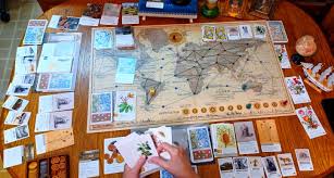 Each player begins the game with a set of randomized goals that they then use to plot their path to victory. When players set out from their estate, they have access only to the coins they can carry with them. They can use these coins to traverse the globe and gain crew members and items to improve their odds of surviving the unknown, enhance their abilities, and increase the efficiency with which they traverse the map. However, there is danger in spending too freely, and players must ensure they have enough wealth on hand to return to England with their specimens intact.