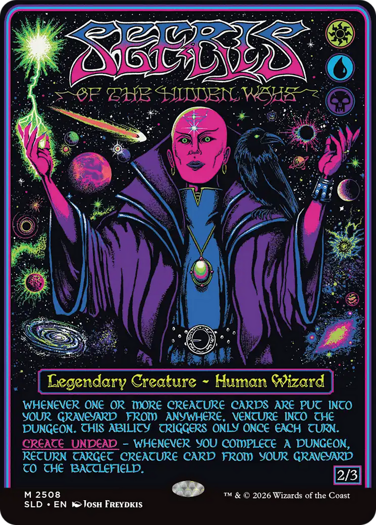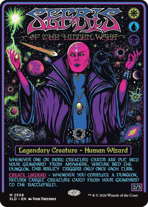 Create Undead — Whenever you complete a dungeon, return target creature card from your graveyard to the battlefield.