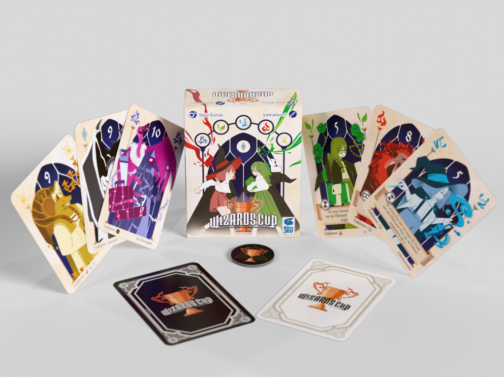 After each round, players may swap one wizard from their hand of six with an unused card, and then create a new five-card deck to duel with. The first player to collect two victory tokens wins!